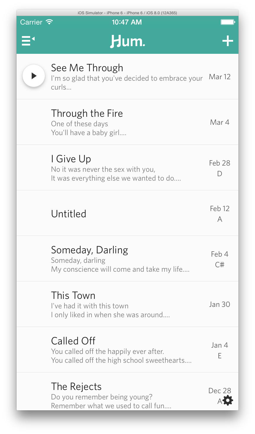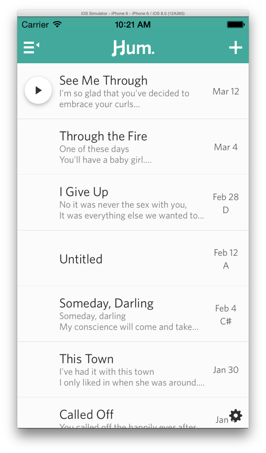 We’re still hard at work on Dropbox syncing. iOS8 was quite a diversion for us (for most developers). We had to make sure Hum’s interface was ready for larger phones.